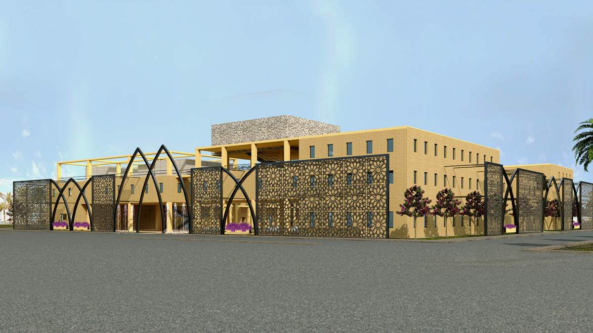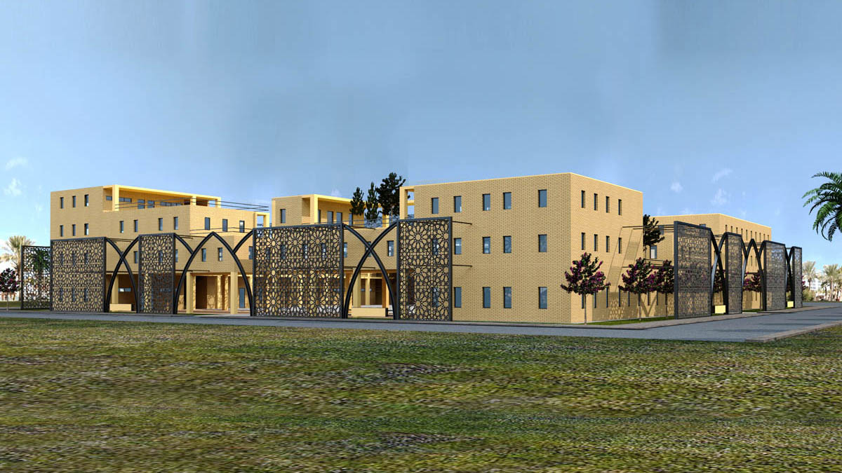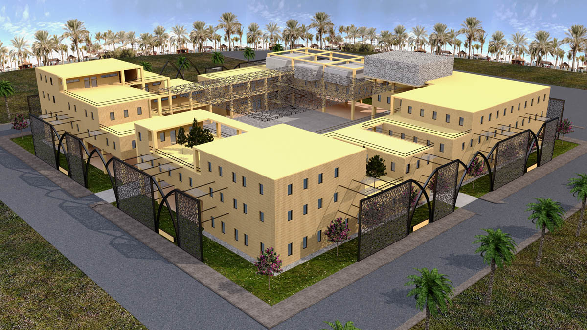 This project is a university. The main material used is the local yellow bricks. The main idea in this project is to create pleasant spaces for the students while keeping the possibility of future extensions.