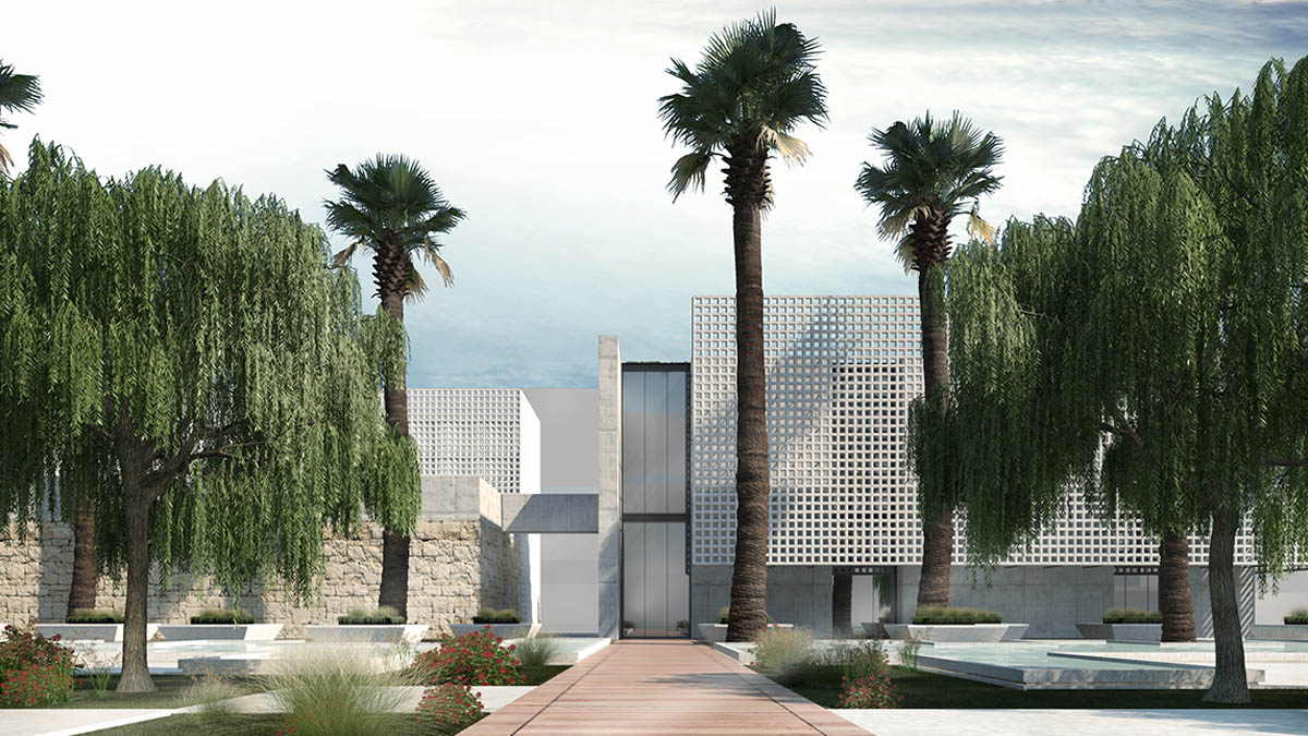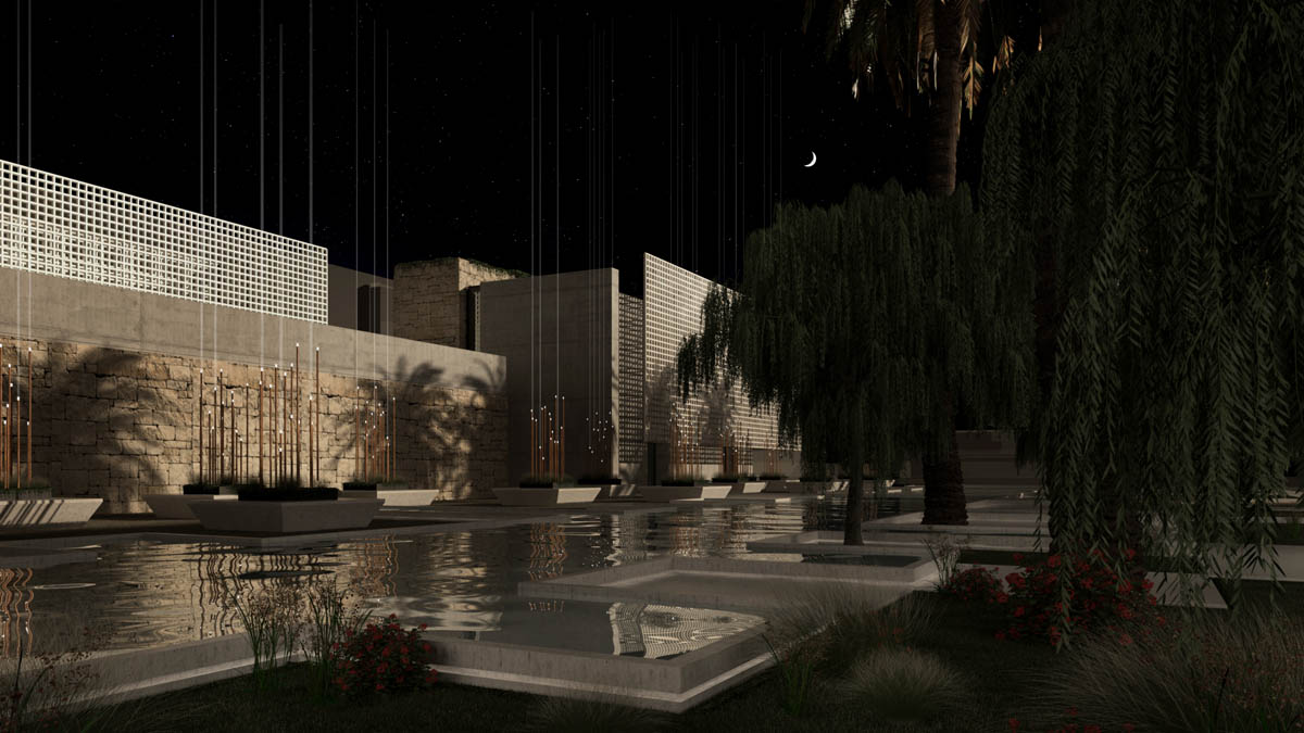 This project is a memorial museum. The architecture is a combination of two masses, a perforated metallic layer and an opaque stone layer. The design focuses on the purity of the volume and the simplicity of the shapes, with two different masses reflecting the nuances of two distinct eras.