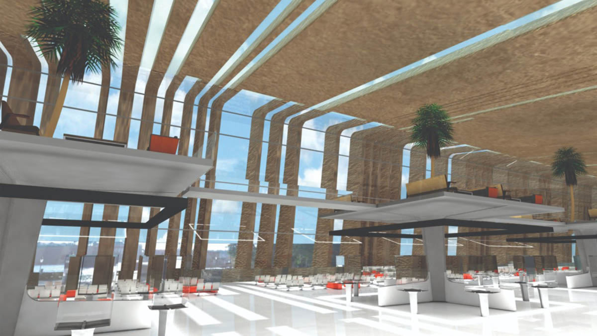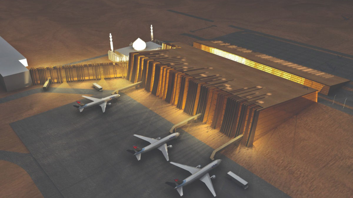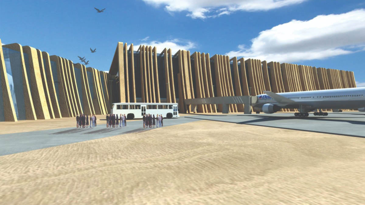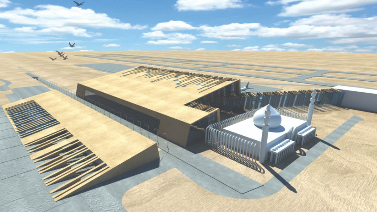 This project is a new terminal for The Al-Najaf Al-Ashraf International Airport. The design consists of multiple concrete ribbons representing speed and dynamism and the terminal volumetric looks like a big sculpture and creating the design from the landscape to the architecture, from the seating spaces, to platforms.