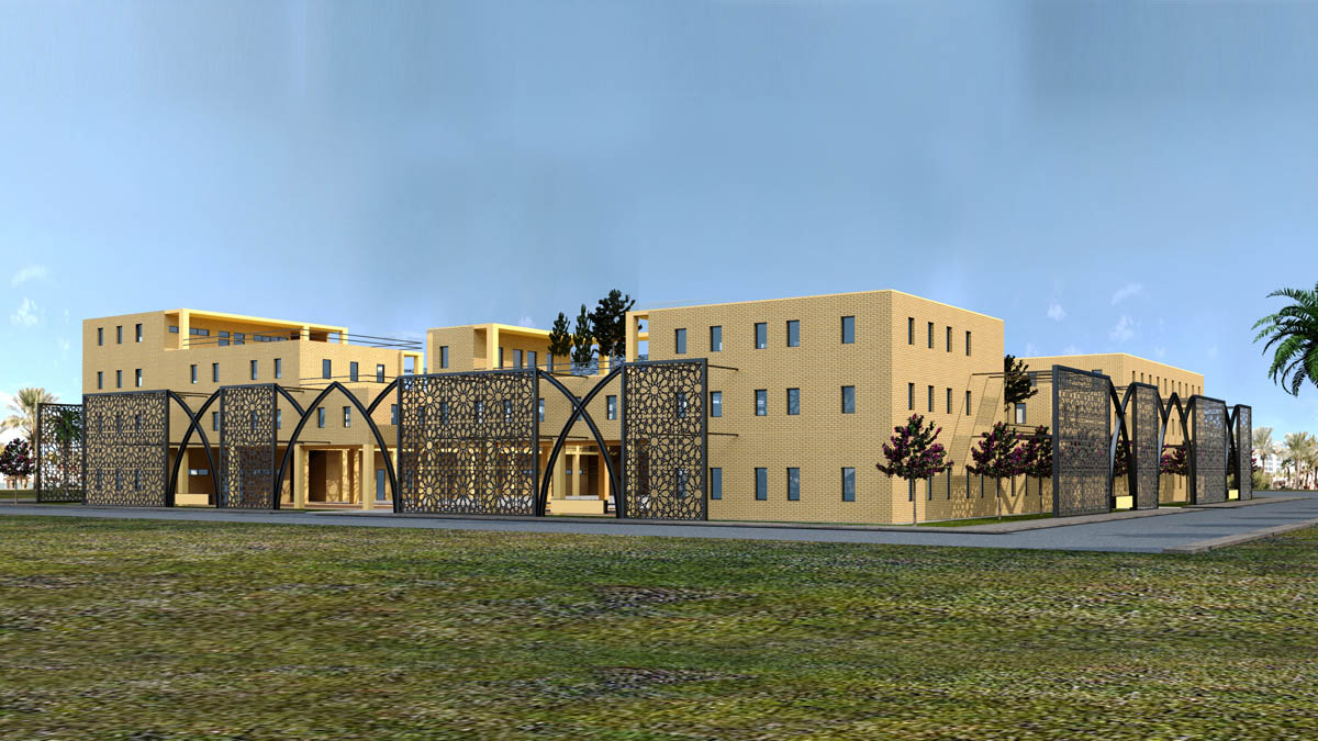 This project is a university. The main material used is the local yellow bricks. The main idea in this project is to create pleasant spaces for the students while keeping the possibility of future extensions.