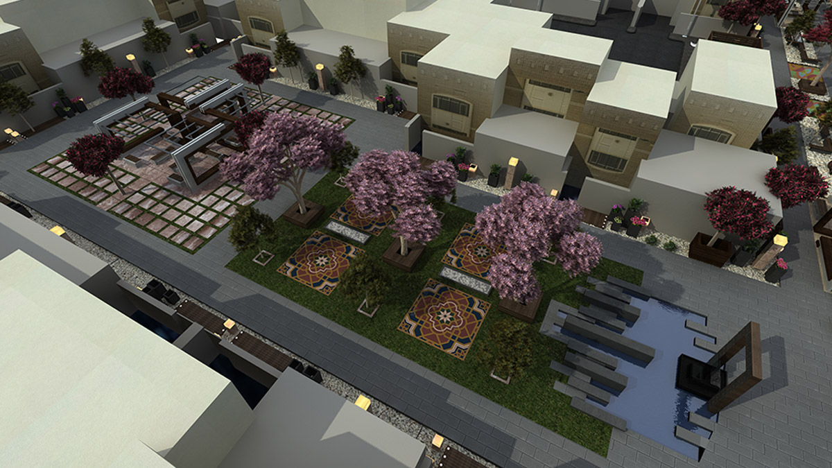 This project is a landscape design creating a livable backyard for residential units aimed at university students. Containing many functions like sport places and walking paths. The use of water at all the entrances represents purification and creates a transitional area.