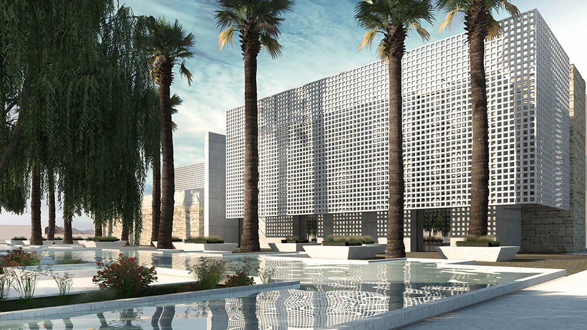 This project is a memorial museum. The architecture is a combination of two masses, a perforated metallic layer and an opaque stone layer. The design focuses on the purity of the volume and the simplicity of the shapes, with two different masses reflecting the nuances of two distinct eras.