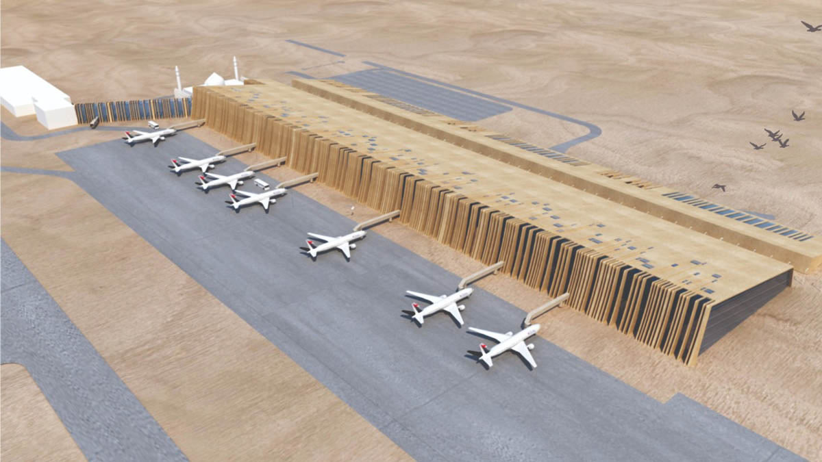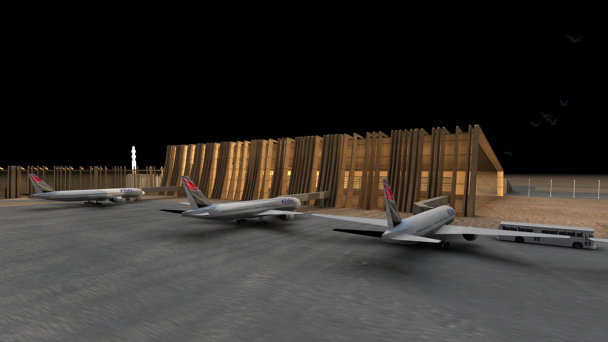 This project is a new terminal for The Al-Najaf Al-Ashraf International Airport. The design consists of multiple concrete ribbons representing speed and dynamism and the terminal volumetric looks like a big sculpture and creating the design from the landscape to the architecture, from the seating spaces, to platforms.